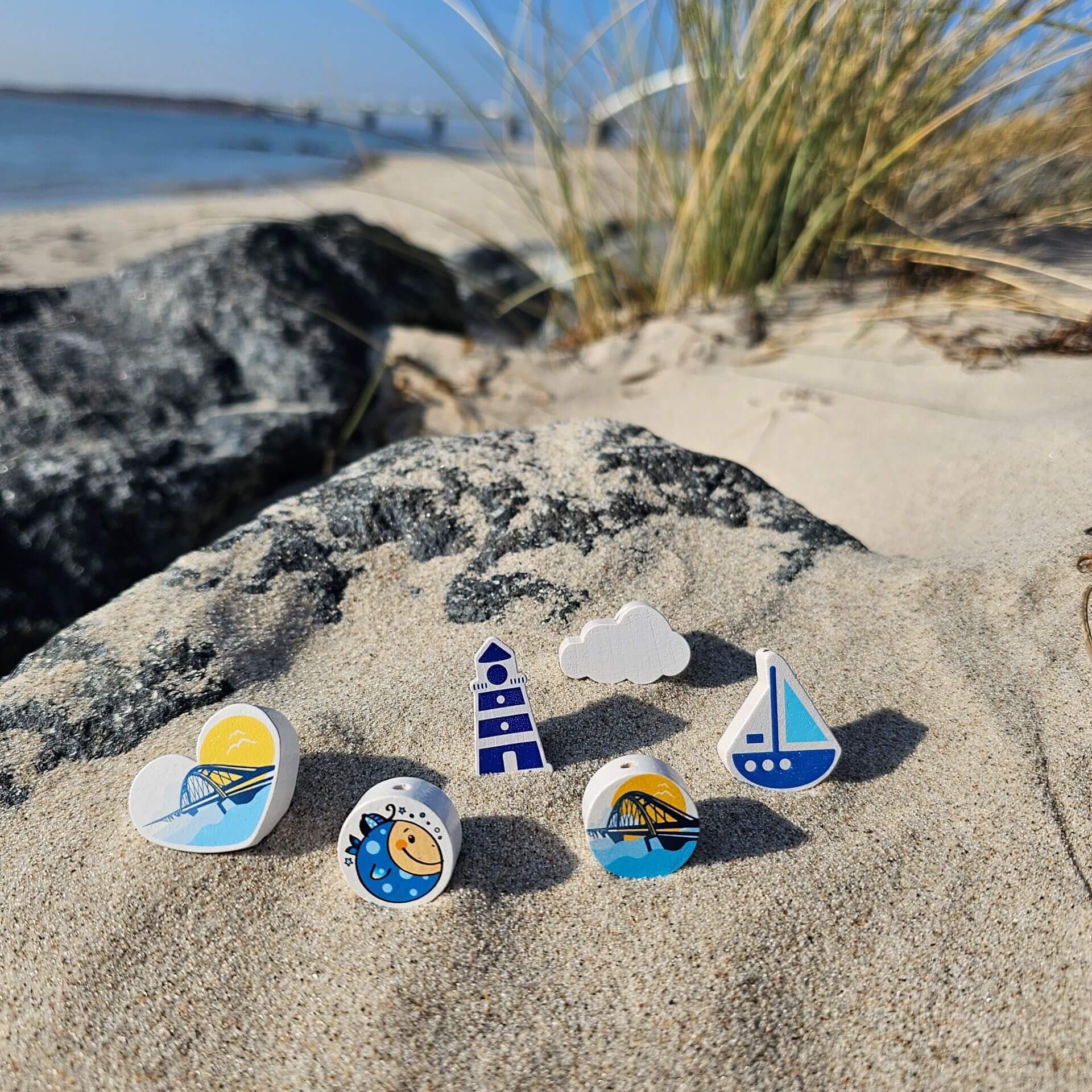 This product is designed for making pacifier chains, baby carriage chains and mobiles for babies. It is therefore subject to the DIN EN 71-3 standard (new standard for the migration of certain elements).Therefore, all motif beads are sweat-, saliva- and color-fast - so they are completely safe for babies' mouths.